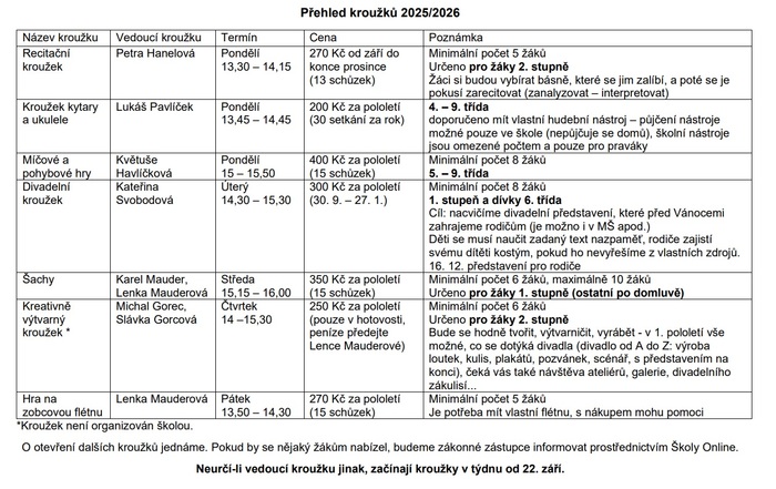 v příloze naleznete přehled kroužků, které jsme připraveni otevřít.